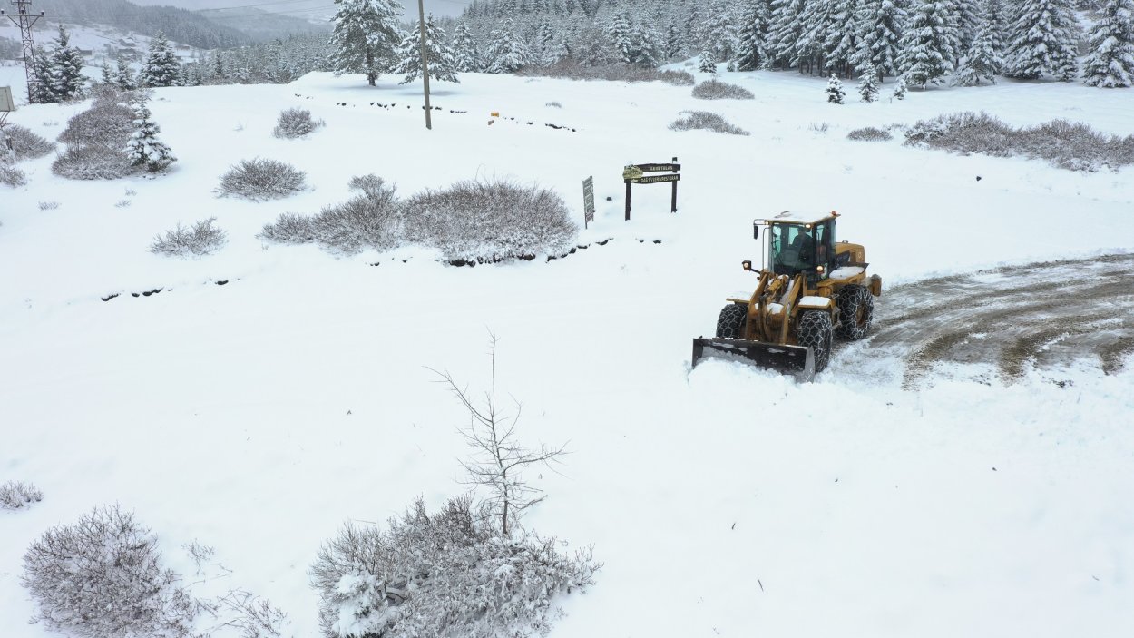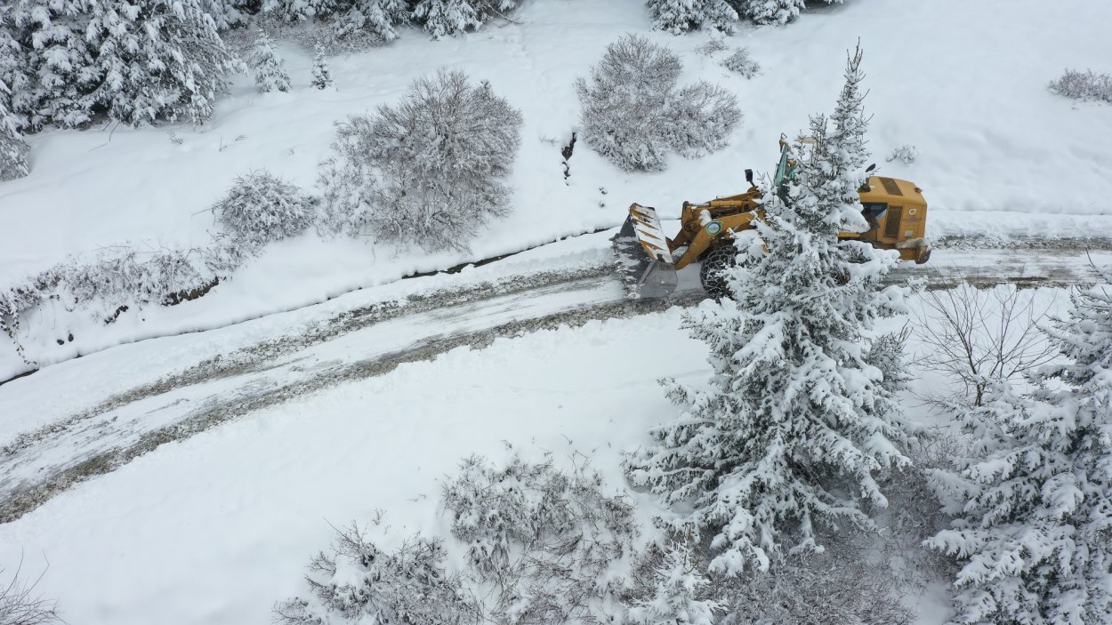 Nisan ayında yağan kar yağışıyla vatandaşların ulaşımda aksaklık yaşaması için sıkı bir çalışma sergileyen ekipler yolların kapanmasının önüne geçmek amacıyla kar küreme, buzlanmaya karşı da tuzlama işlemi yürütüyor.