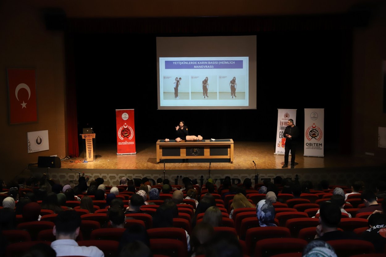 Öğrencilerin yoğun ilgi gösterdiği ilk yardım farkındalık eğitiminde öğrenci ve personellere acil durumlarda ilk yardımın nasıl yapılması gerektiğini anlatıldı. Teorik bilgilerin yanı sıra, uygulamalı eğitimlerle de katılımcıların öğrendiklerini pekiştirdiği eğitimde temel yaşam desteği, yaralanmalarda ilk yardım, kırık ve çıkık durumlarında yapılması gereken müdahaleler gibi konular ele alındı. Katılımcılar, eğitim boyunca edindikleri bilgileri uygulamalı olarak deneyimleme fırsatı da buldu.