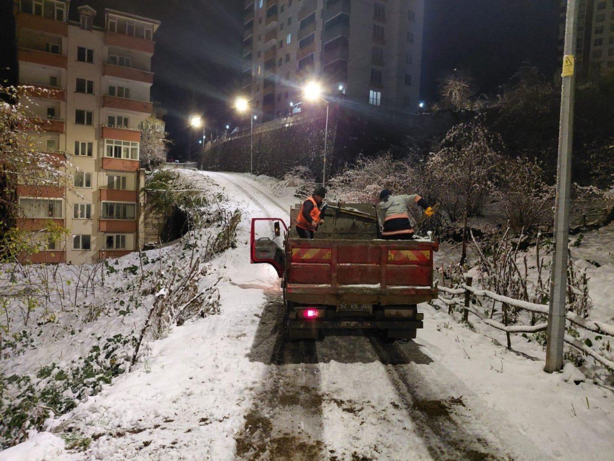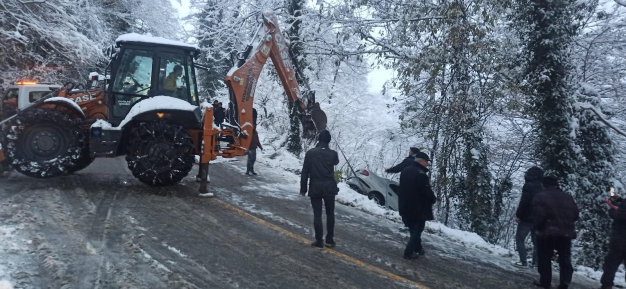 Ayrıca yolda kalan araçlara da anında müdahale eden ekipler, iş makineleri yardımıyla araçları bulundukları yerden kurtararak sürücülerin güvenli şekilde yollarına devam etmelerini sağladı.