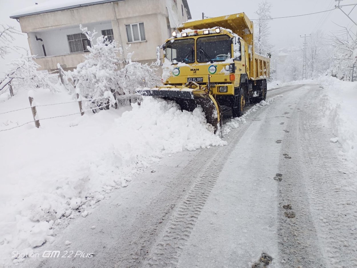 Meteoroloji Genel Müdürlüğü tarafından yapılan uyarılar sonrası dün akşam saatlerinde başlayan kar yağışı yüksek rakımlı ilçelerde etkili oldu. Altınordu ve Ulubey ilçelerinin yüksek kesimleri, Akkuş, Aybastı, Gürgentepe, Kabataş gibi ilçelerde kar kalınlığı 70 cm’ye ulaştı. Ortalama kar kalınlığının 45 cm’yi bulduğu il genelinde ulaşımda aksaklık yaşanmaması için ekip ve ekipmanlarını seferber eden Büyükşehir Belediyesi, bir günde 4 bin 157 km yolu ulaşıma açtı.