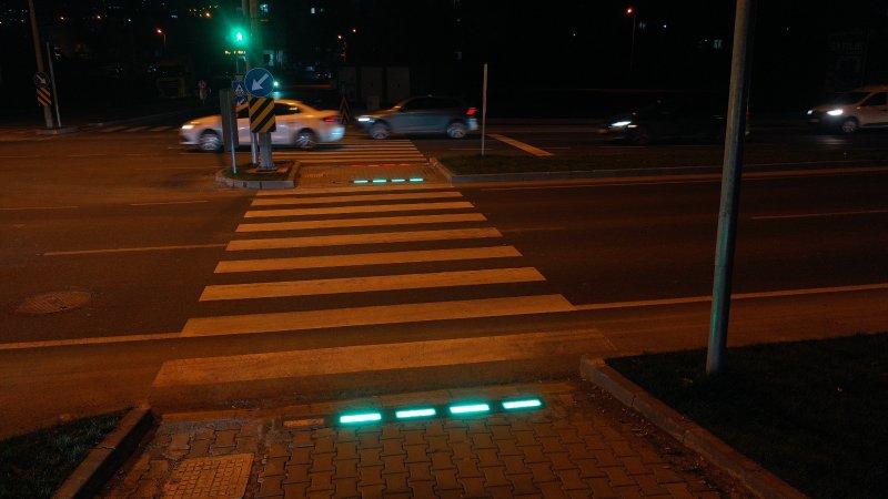 Büyükşehir Belediyesi, yaya geçidi bulunan kavşaklarda sürücü ve yayaları daha etkin şekilde uyarmak amacıyla üretilen LED’li yaya kaldırım sistemini devreye aldı. Buna göre Büyükşehir ekipleri, LED’li zemin yaya kaldırım taşlarının imalatlarını sinyalize kavşaklarda yaya geçiş güzergâhlarının başlangıç ve bitiş noktaları üzerine gerçekleştirdi.